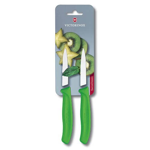Victorinox Swiss Classic Serrated Paring Knife Pointed Tip Twin Pack - Green